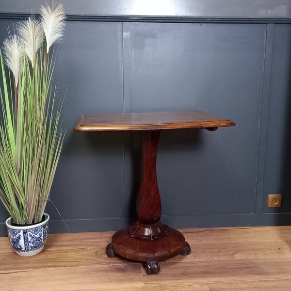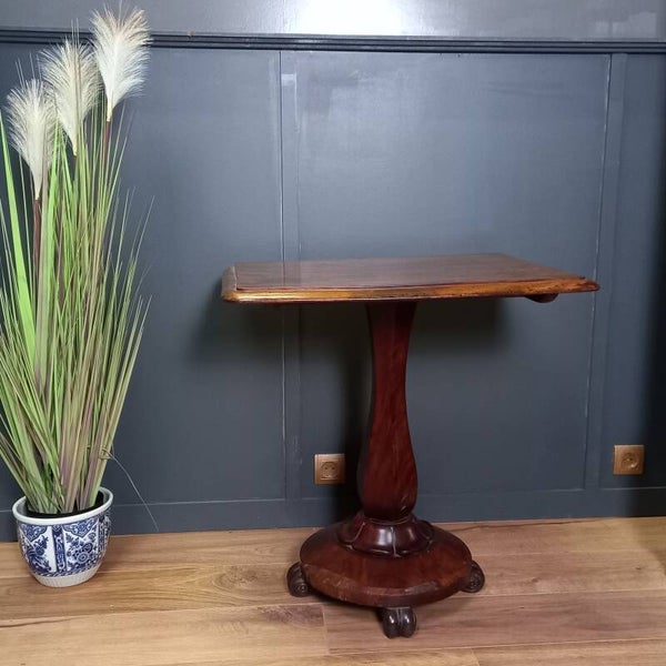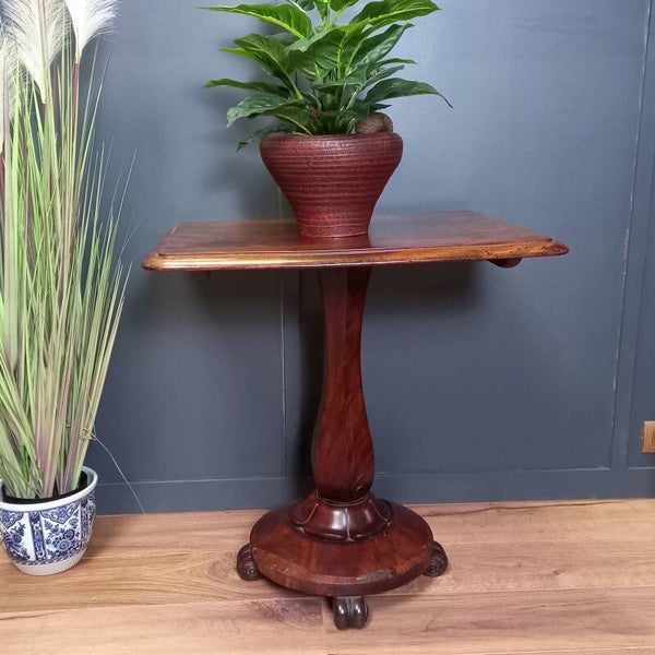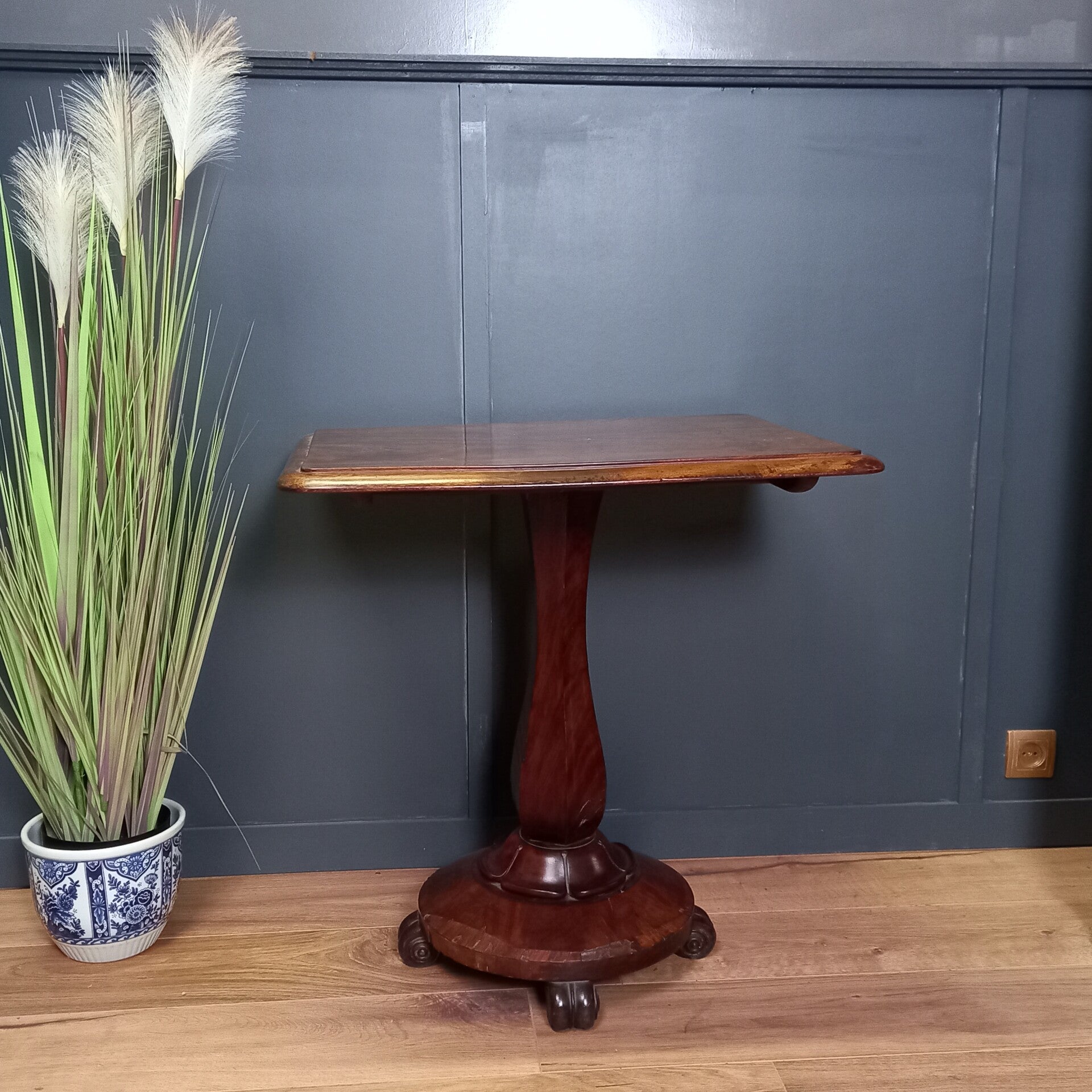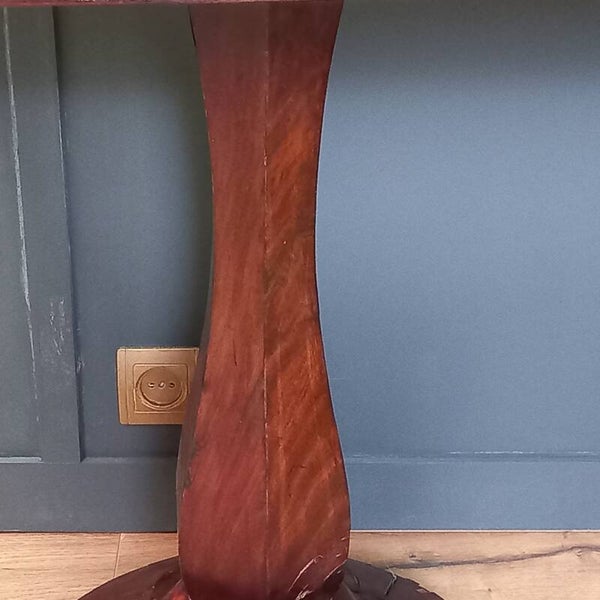 De poot is van mahonie maar is gefineerd en heeft fineerschade onder aan de poot.