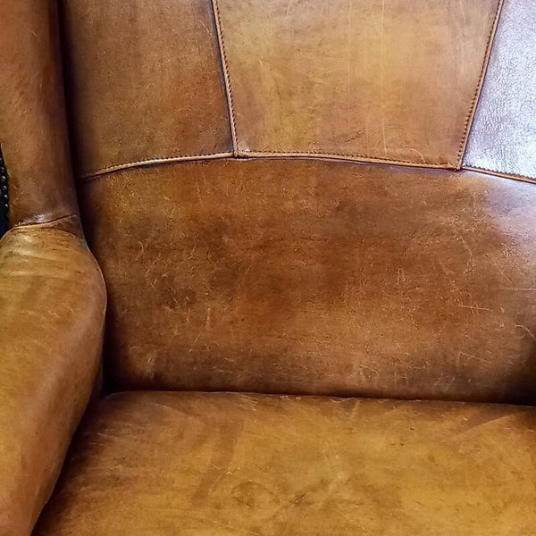 Karakteristieke schapenleren oorfauteuil