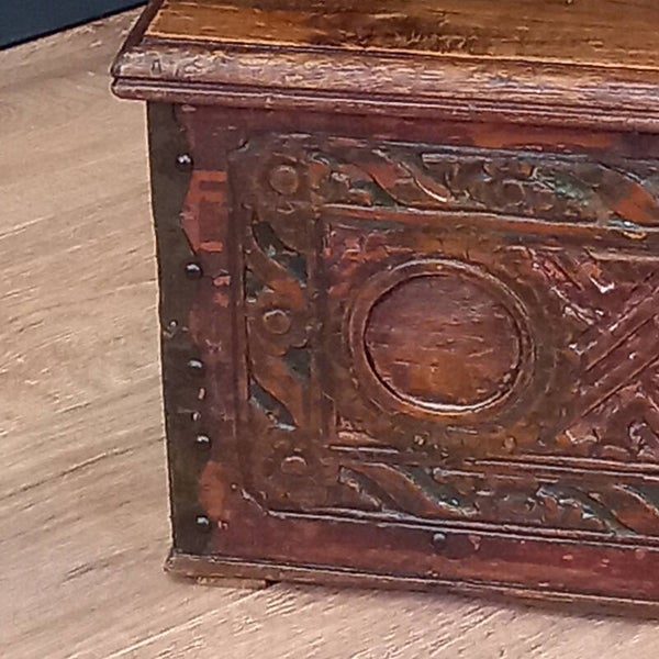 Dit prachtige kleine volkskunst bruidsschatkistje uit Oostenrijk is een echte blikvanger.