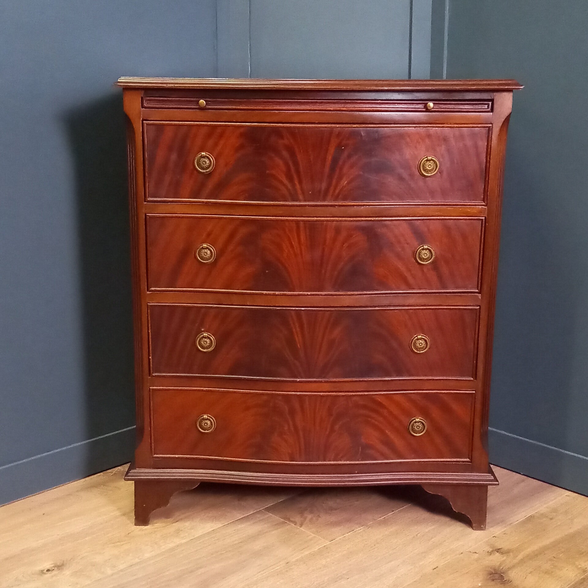 Met vier ruime lades biedt de kast volop opbergruimte. Het bovenblad is ideaal voor bijvoorbeeld een scheerspiegel of aftershave.