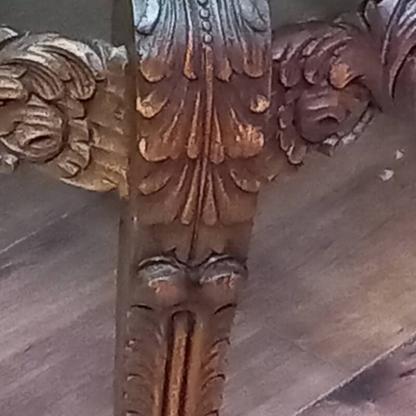 De poten zijn zorgvuldig versierd met gesneden bladmotieven bij de knieën en eindigen in elegante, kransvormige voeten, afgewerkt met delicate bloemenornamenten.