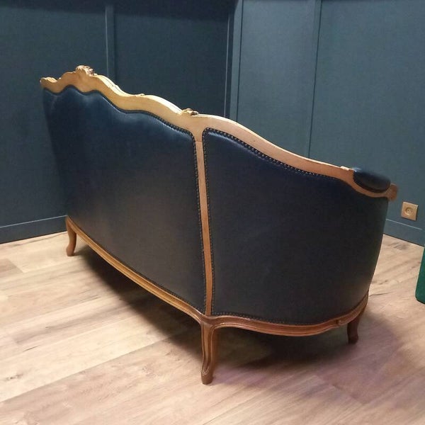 Vintage Chesterfield Loveseat van Marineblauw Rundleer – Victoriaanse Klasse met Comfort