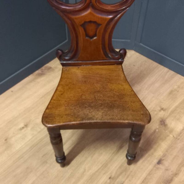 Antieke Engelse Halstoel in Notenhout – George IV Periode (ca. 1825–1830) met Wapenschild